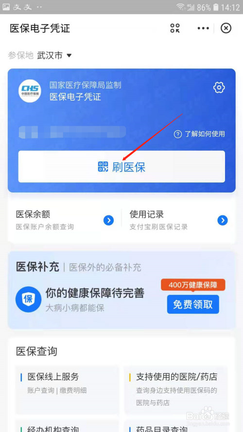 绑定医保卡后,点击“刷医保”即可出示条码扫码即可。