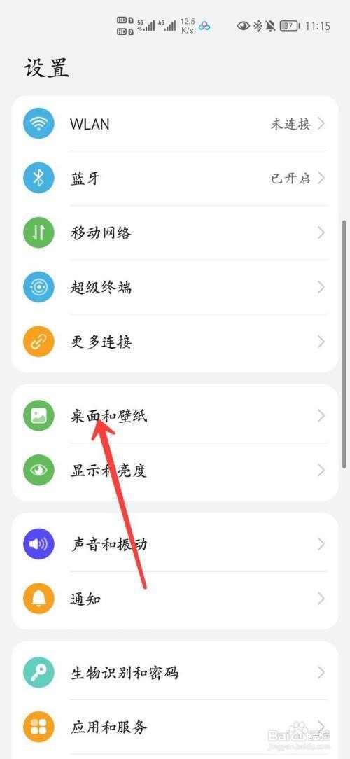 然后在设置选项中,选择桌面和壁纸设置;