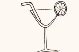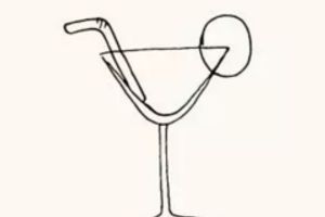 再画出杯子扁扁的杯底,在杯中画出一根长长的吸管。然后在杯子的边缘画出一个圆形的柠檬片。