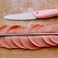 把泡发好的红枣用刀切成小片、蘸少许清水贴在面皮上即可
