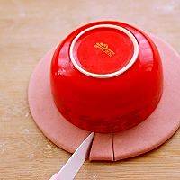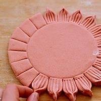 取一个碗放在面皮中间、这样做出来的花瓣是均匀的