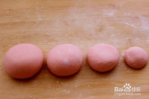 排气揉匀、分成四份大小不同的剂子