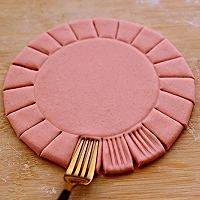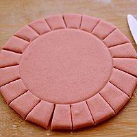用奈瓷刀在面皮上切成大小一致的花柱