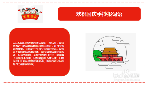 第三步,画个文本框,写上关于“欢祝国庆手抄报词语”相关的具体内容。