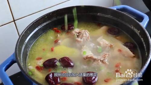 时间到后往锅中加入适量的枸杞,搅拌均匀后加入适量的葱花,搅拌均匀后即可出锅。