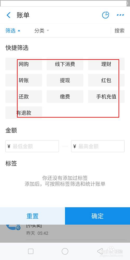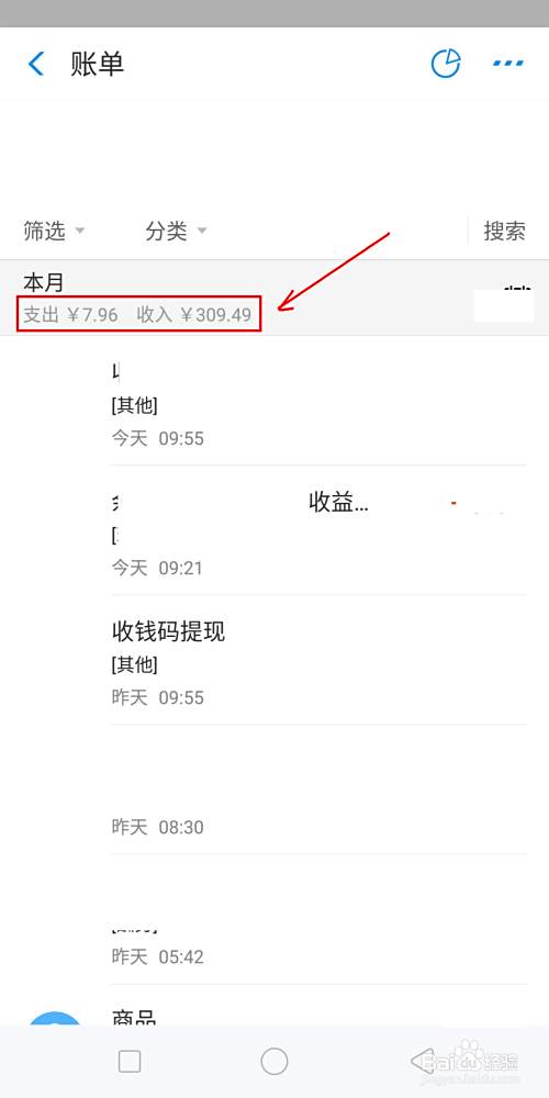点击“筛选”可以看到比较简单的支付和收入方式,更方便看帐。