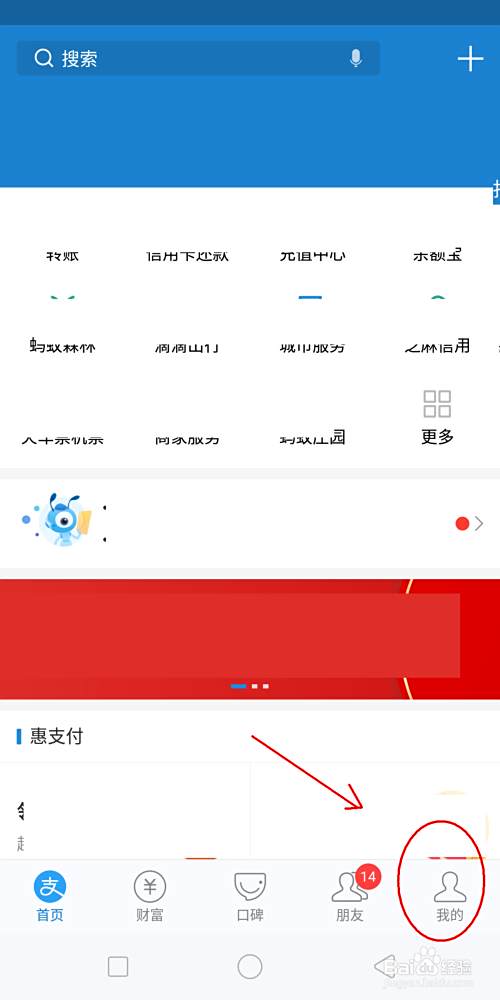 登录支付宝APP,点击右下角“我的”。(如下图)