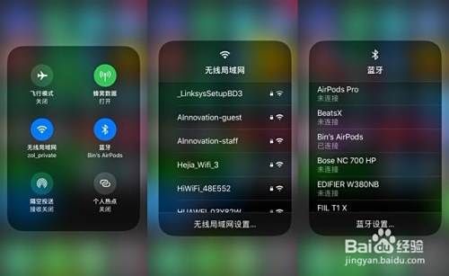 操作方法:屏幕上拉进入控制中心→重按WiFi/蓝牙图标→选择需要连接的WiFi/蓝牙设备