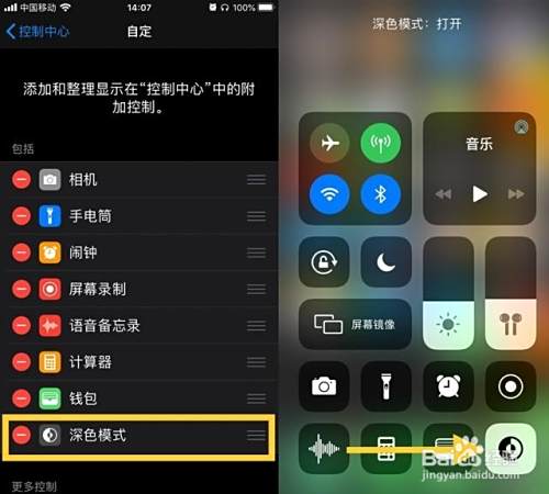 iPhone 11搭载的是新一代iOS 13操作系统,提供了全新的深色模式,这个功能最大的优点,就是确保我们在光线较暗的环境下,使用手机时不刺眼;而且深色模式,也给很多APP的UI带来非常酷炫的效果。那么,第一个小技巧就是教你如何快速打开深色模式,其实只需在设置里将深色模式添加到控制中心就可以了,之后切换深色模式2秒即可搞定。