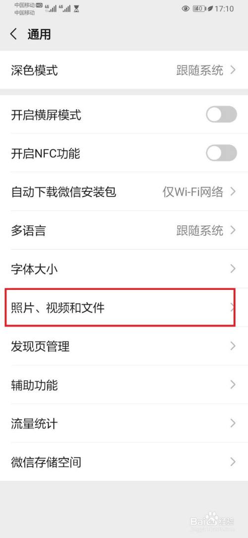 进入通用页面,选择打开【图片、视频和文件】选项,如下图所示。