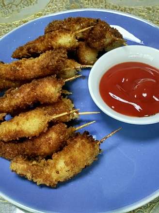 这是裹好后,油炸的步骤没有放上去,油炸2分钟即可,沾着番茄酱吃很好吃