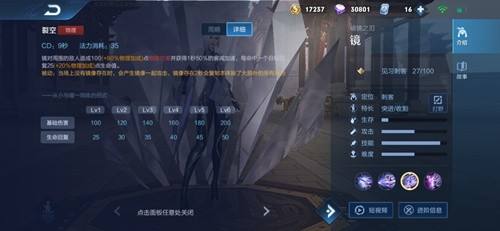 见影:本体和镜像会从镜面两侧飞出,镜像空间存在10秒,本体或镜像对敌人造成伤害时,最近的碎片会飞向敌人并造成2%已损生命值的斩杀伤害。