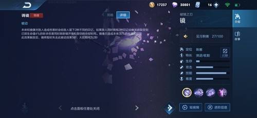 铸镜:本体和镜像对敌人造成伤害时会给敌人留下2种不同的印记,镜像造成的伤害和回复只有本体的30%。