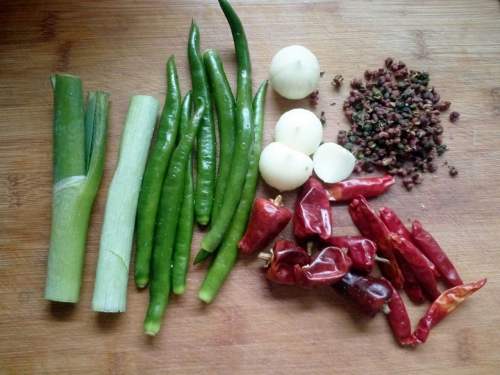 3将配菜洗净,重口味的亲可以加大花椒和干海椒的量。