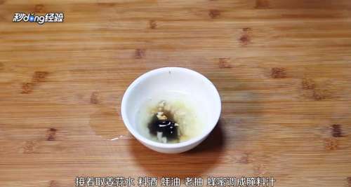 2接着向姜蒜水中加入料酒、蚝油、老抽、蜂蜜调成腌料汁,腌制排骨两小时以上。