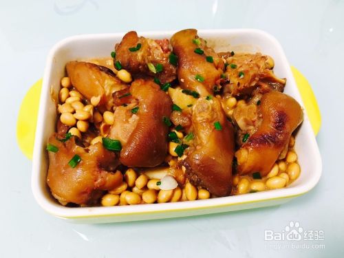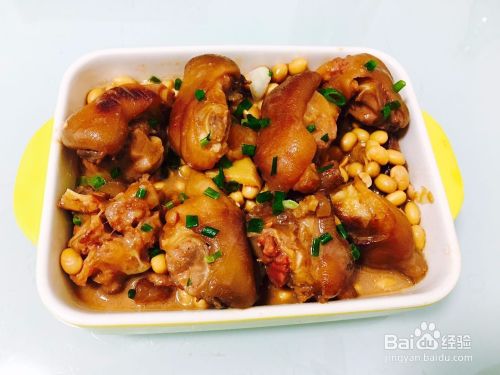 最后一步就是将做好的猪蹄炖黄豆装盘,在端上桌享用之前撒上适量葱花装饰下!