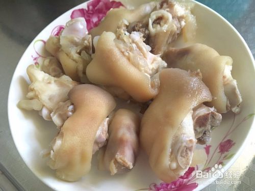 接着将猪蹄洗干净与冷水一起下锅,开大火焯一边水,焯好水之后洗干净沥干水分放在盘子里备用!