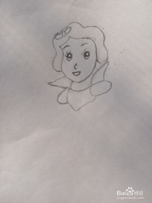 接着画发型和发卡,然后再勾勒出公主的脖子、衣领、上衣的外形。注意它们之间的位置和形状。