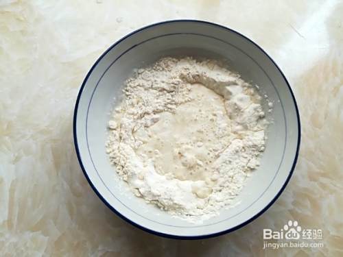 取一个有深度的大碗,放入面粉,玉米淀粉和水调成缓慢滴落的面浆,水的用量根据面粉来调节