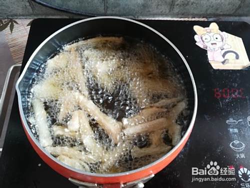 小奶锅里放入适量的油,中火烧到5分热,放入筷子会冒小泡泡,把挂好面浆的藕条一根一根的放入油锅里到藕条浮上油面,转大火炸一分钟捞出。建议用小而深的小锅炸,这样比较省油。v藕条全部炸好以后,再复炸一次捞藕的新吃法,比薯条省事,不用焯水,不用冷冻,简单方便又好吃出沥一下油