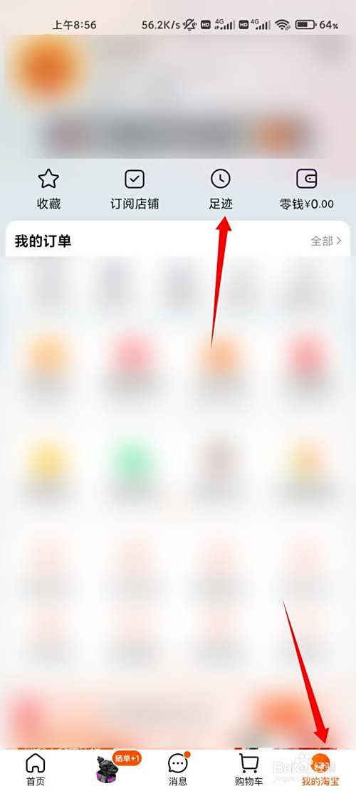 进入我的淘宝页面,点击足迹的选项。