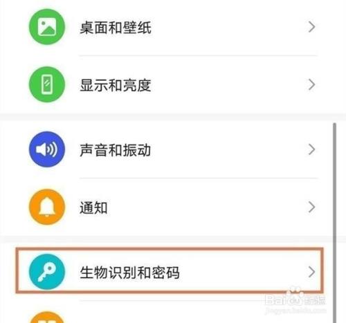 在手机桌面设置菜单中点击【生物识别和密码】。