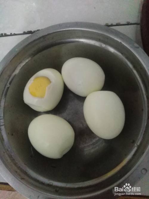 将鸡蛋放入铁锅中加冷水煮开,再转小火煮十多分钟至熟透。