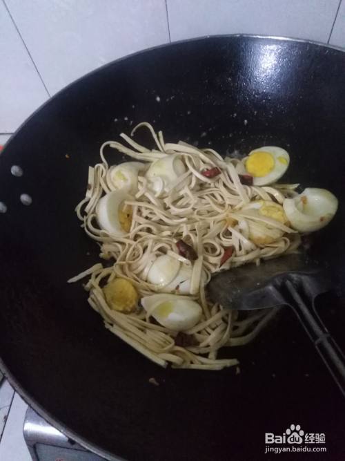 鸡蛋炒香后再加一点油倒入豆腐丝开大火淋入生抽爆炒几分钟,加一点水焖煮一下放蒜米白胡椒粉翻炒几下就好了。