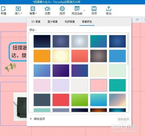 focusky默认是白底的,在生成视频时不好看,上传时也显得很单调,可以设计成不同颜色。