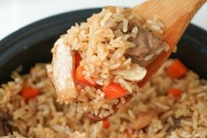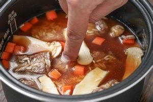 最后倒入超出食材约三分之一食指指节的清水水量,按下煮饭按键