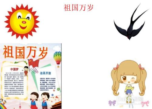 首先,在画纸的上方中间位置画上标题“祖国万岁”