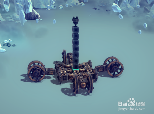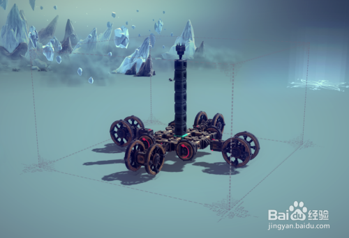 由于任务对高度有要求,你可以增加一个拉伸来调整,或者直接收齐轮子用惯性来完成,由于这个碎片有浮力,你是不会倒的,来回开用惯性甩下去就可以了
