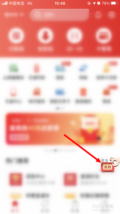 首先在手机上打开并登陆云闪付,并在首页面点击【签到】。