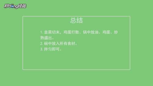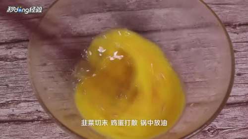 韭菜切末,鸡蛋打散,锅中放油,鸡蛋炒熟。