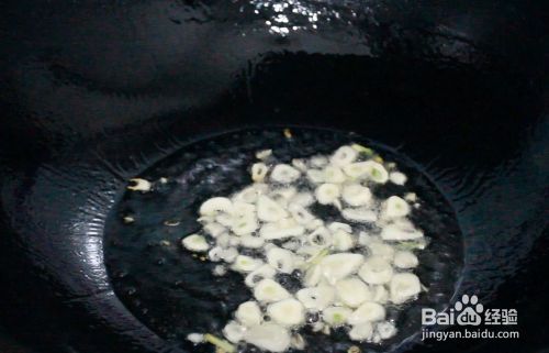 锅中放油,放入蒜炒香。