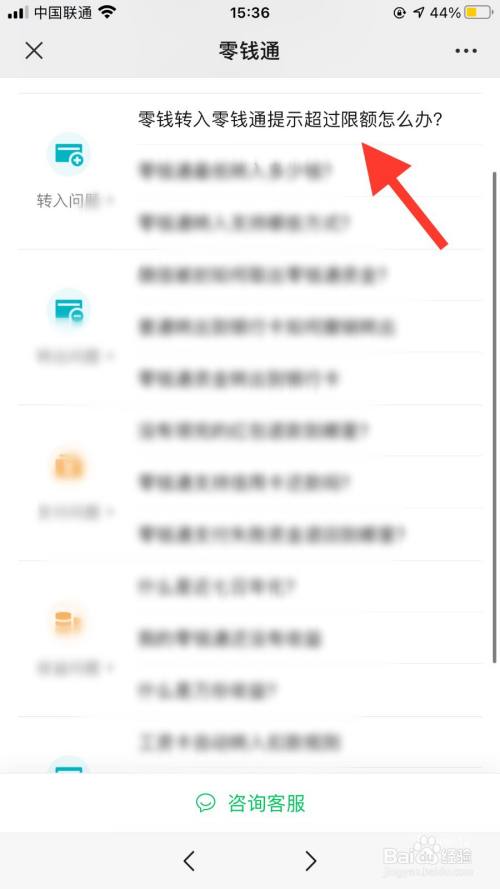 在常见问题列表点击零钱转入零钱通提示超过限额怎么办?