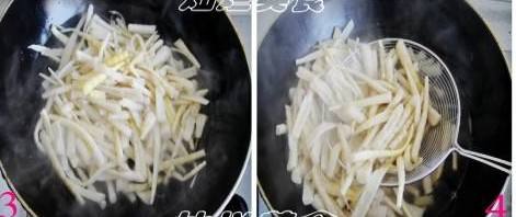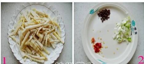 6、放入葱花,成拌汁。浇在竹笋上,调入盐装盘。