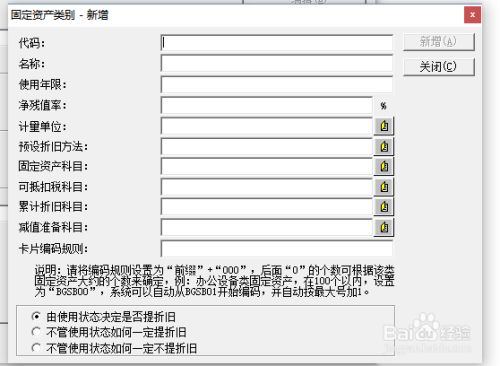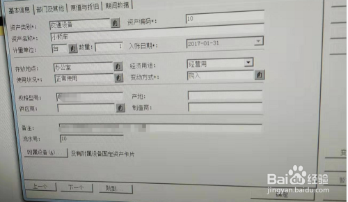 点击“固定资产增加”,进入固定资产管理页面,开始填写固定资产卡片