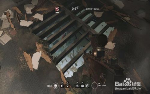 『进阶用法3』:破坏木质地板,虽然无法破坏地板下的钢筋结构,但是却给予了你射击窗口。