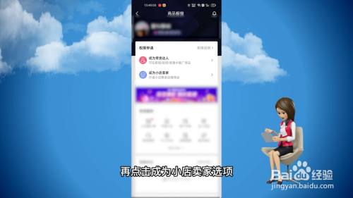 接着点击商品橱窗选项,再点击成为小店卖家选项,接着点击立即入驻。