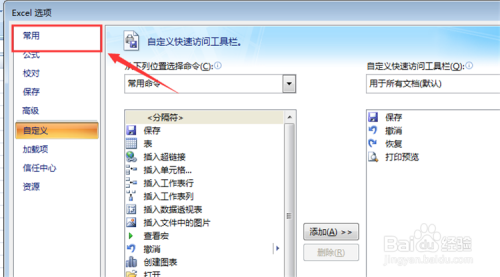 然后进入到Excel选项窗口里面,点击左侧的【常用】选项。