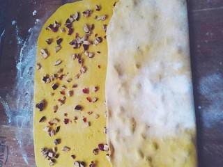 再次擀成薄片,撒上红枣,折三折。