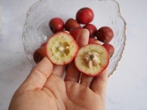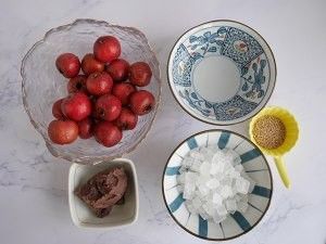 准备好材料,山楂洗净,晾干,表面不要有水,从中间切开,去掉籽