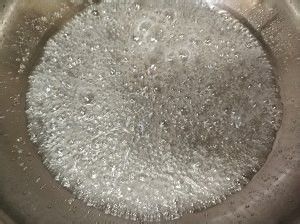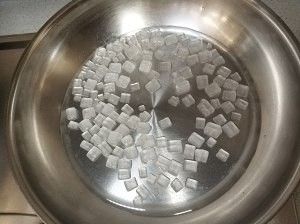 糖浆开始冒大泡,慢慢的糖浆开始冒小泡,转小火,看到糖浆有点点变黄
