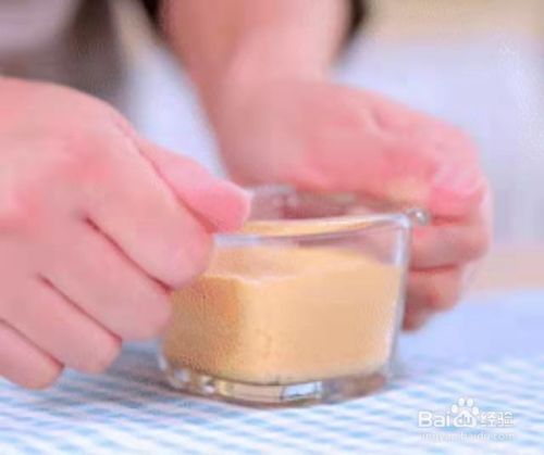 将红薯糊倒入模具中,大概7分满,然后拿起轻震几下。