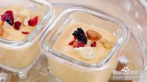 将模具放入蒸锅中,盖上保鲜膜,静置发酵为原来的2倍大。发酵完成后,去掉保鲜膜,表面再撒些坚果干果。