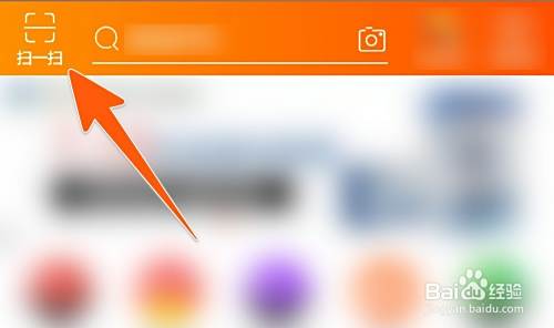 看到盒子上的追溯码后,就可以用手机先打开淘宝,然后点击左上角的那个扫一扫图标,如下图所指。