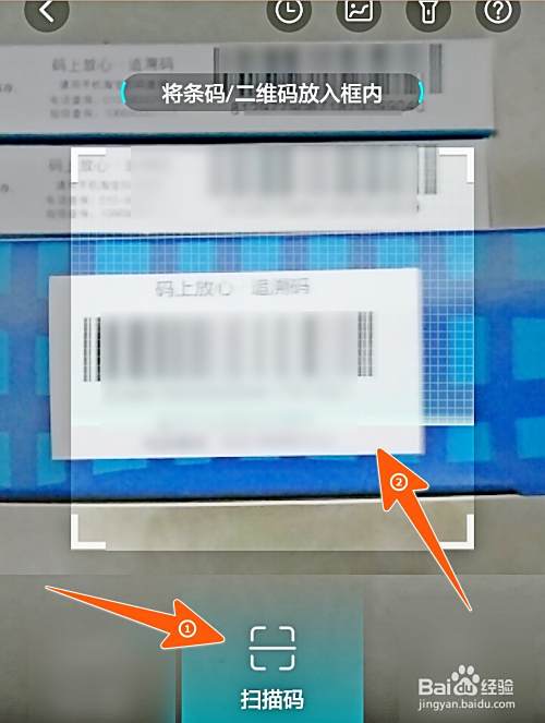 接着就会打开一个用来扫描码的界面,点击扫描码,再将药品包装盒上的那个条形码,放入这个界面上的扫描码框的中央。