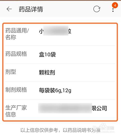 点击上面图中的那个药品详情,就可以查看该药品的名称、规格和生产方的信息。这样,就能利用药品包装盒上的追溯码来进行药品验真了。