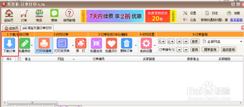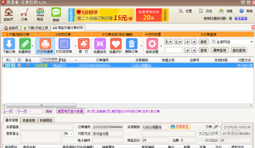 勾选需要打印的订单,点击打印快递单,首次使用需要手动填写寄件人